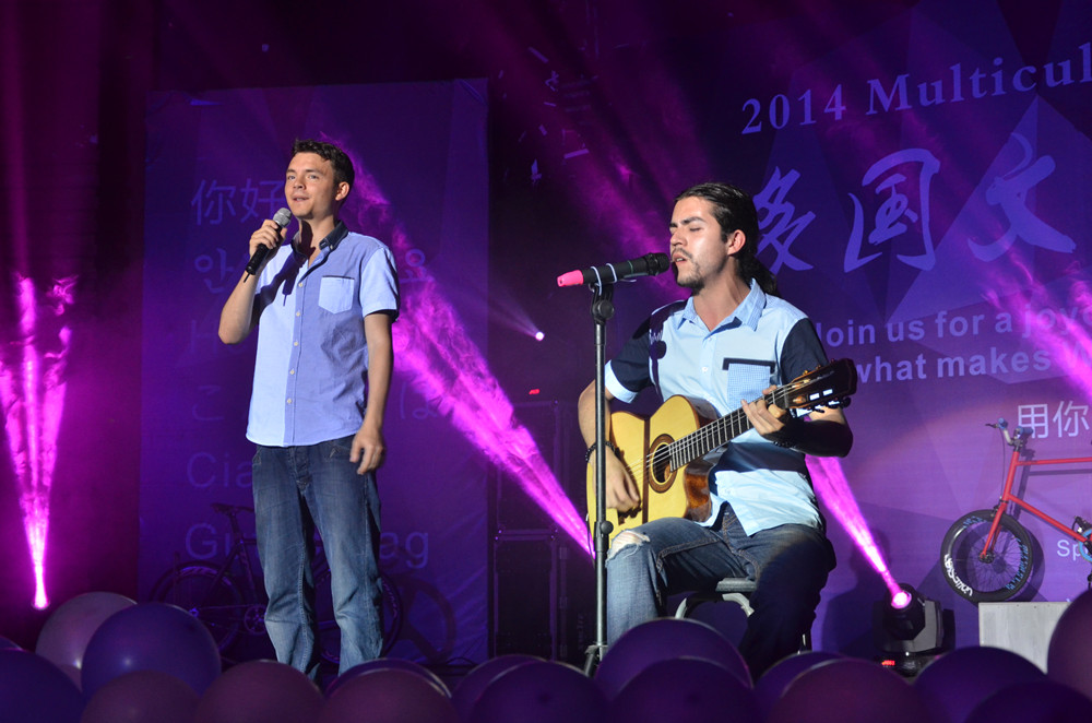泰国留学生给大家展示了原汁原味的泰国文化,她们自己制作的服装更是惊艳全场;韩国留学生戴面具表演的传统舞蹈掀起了新的“韩潮”;荷兰学生和墨西哥学生联袂演出的《Hero》,更是让现场观众陶醉其中;非洲留学生的乐队表演,特别是深情演绎的中文歌曲,引发现场观众的共鸣,赢得阵阵掌声。中国学生表演的舞台剧《白雪公主》让人捧腹大笑;而《说唱脸谱》更是中西合璧,中外学生合作默契,全场观众赞不绝口;乌兹别克斯坦留学生们与观众的互动摔跤则让晚会气氛达到高潮。
