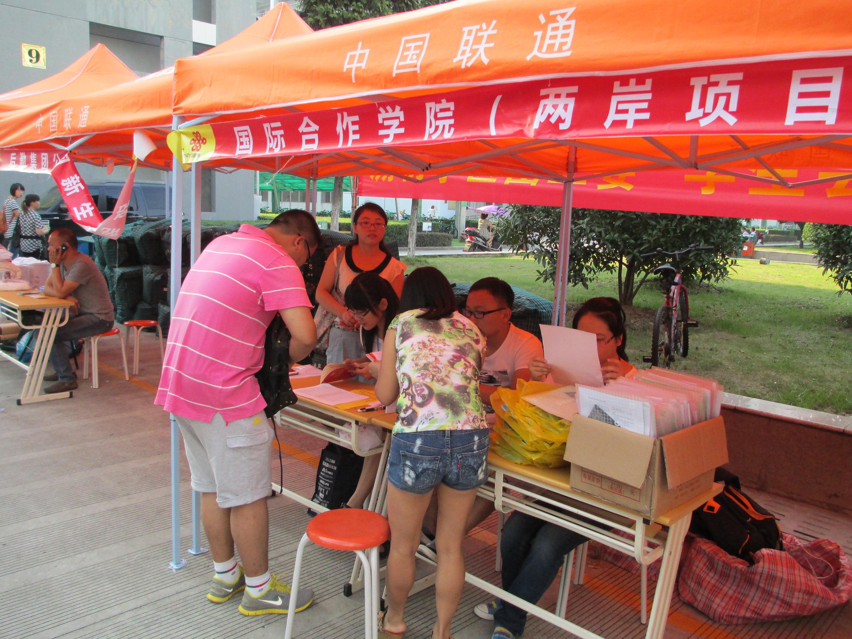 的新生分别安排在C区(两岸合作项目)和E区(中丹合作项目),只要新生一进入学区,不管在哪个学区都就有人迎上前去带路和一起搬行李,报到注册、分发资料、领取钥匙饭卡等,直到把新生送入宿舍,环环相扣,无一遗漏,很多新生家长都高兴地说“把孩子交给你们我们放心”。