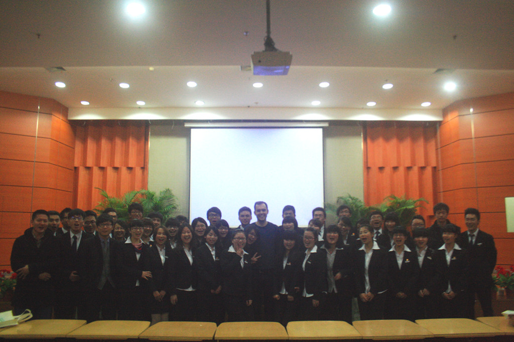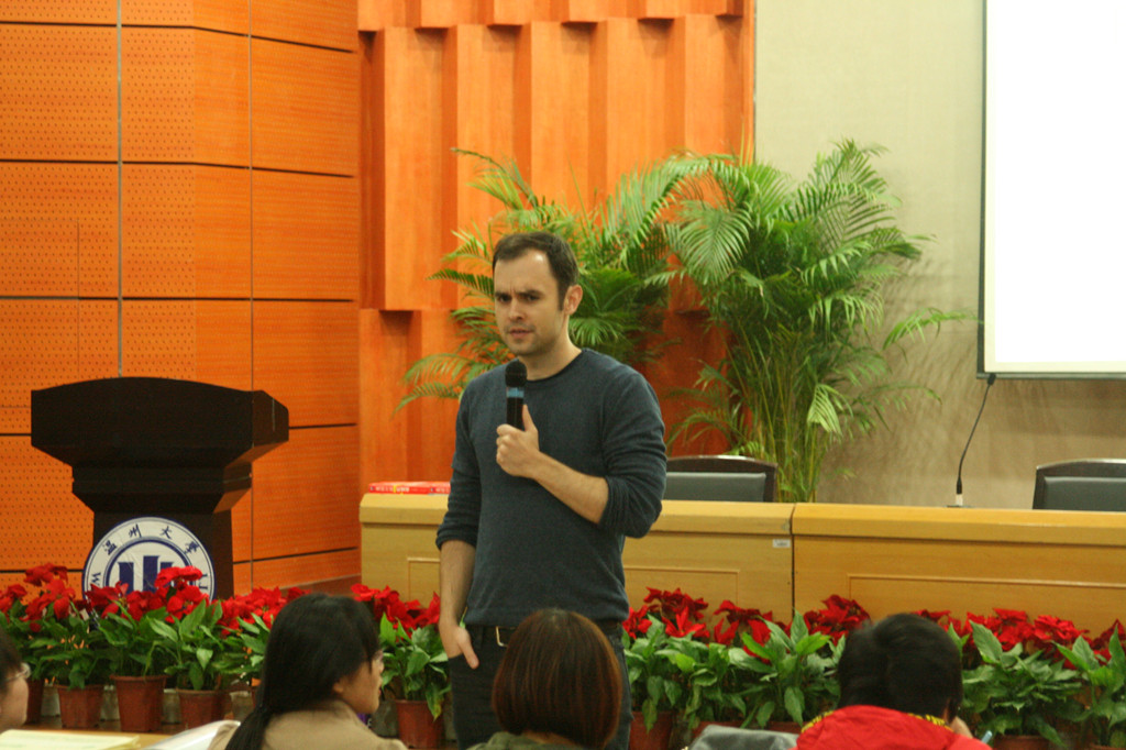 作为国际合作学院喜迎校庆80周年系列活动,多国文化讲座自去年11月21日启动以来,已举办了5场。为了更好地开展此活动,3月21日,国际合作学院邀请了著名的中央电视台《快乐学汉语》主持人、天津卫视《非你莫属》BOSS团成员、湖南卫视《汉语桥》嘉宾主持John Gordon(美)来校与大学生们分享有关中美文化交融的讲座。