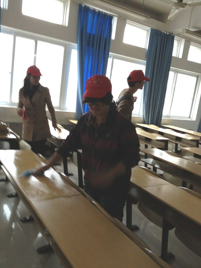 为了让同学们有一个洁净舒适的学习环境,近日,国际合作学院青协成员在南校区建工楼开展了“拒绝课桌文化,清洁课桌涂鸦”的活动。志愿者们在经过分组后,就拿出自己携带的抹布,水桶和清洁用品,开始对课桌进行细致地清理,不放过一个污点。经过近一个下午的努力,大部门教室桌面上的胶纸、字迹、污渍已经消失殆尽,看到焕然一新的课桌,志愿者们脸上露出了欣喜的笑容。清洁结束后,志愿者们还在建工楼前开展“拒绝课桌文化”的倡议活动,向更多的同学宣扬爱护课桌、美化环境的理念。