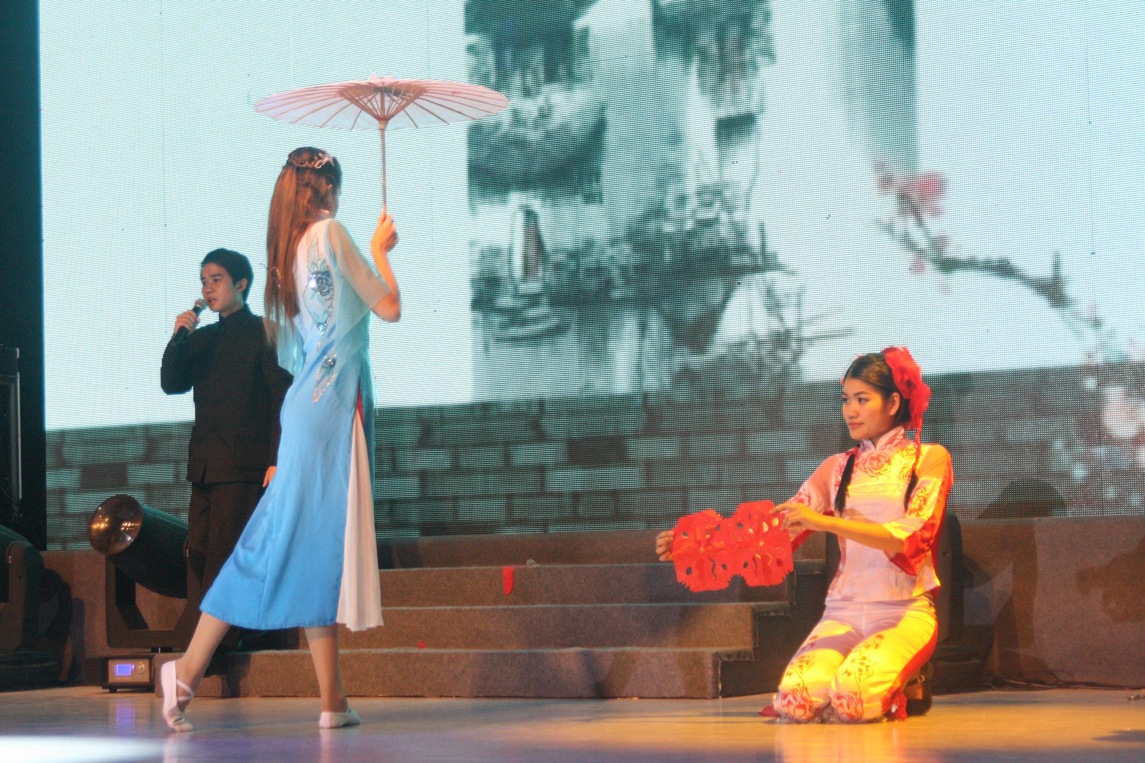 来自乌克兰、泰国和意大利等6名留学生参加了演出,他们表演的节目《雨巷》,以优雅的舞姿,标准的普通话,深情的朗诵,精彩地诠释了江南雨巷朦胧而又幽深的美感,赢得了在场嘉宾和各国留学生的一致好评该节目还被选送参加了在杭城举办的诗唱西湖”——庆贺西湖申遗成功一周年大型诗歌朗诵会。