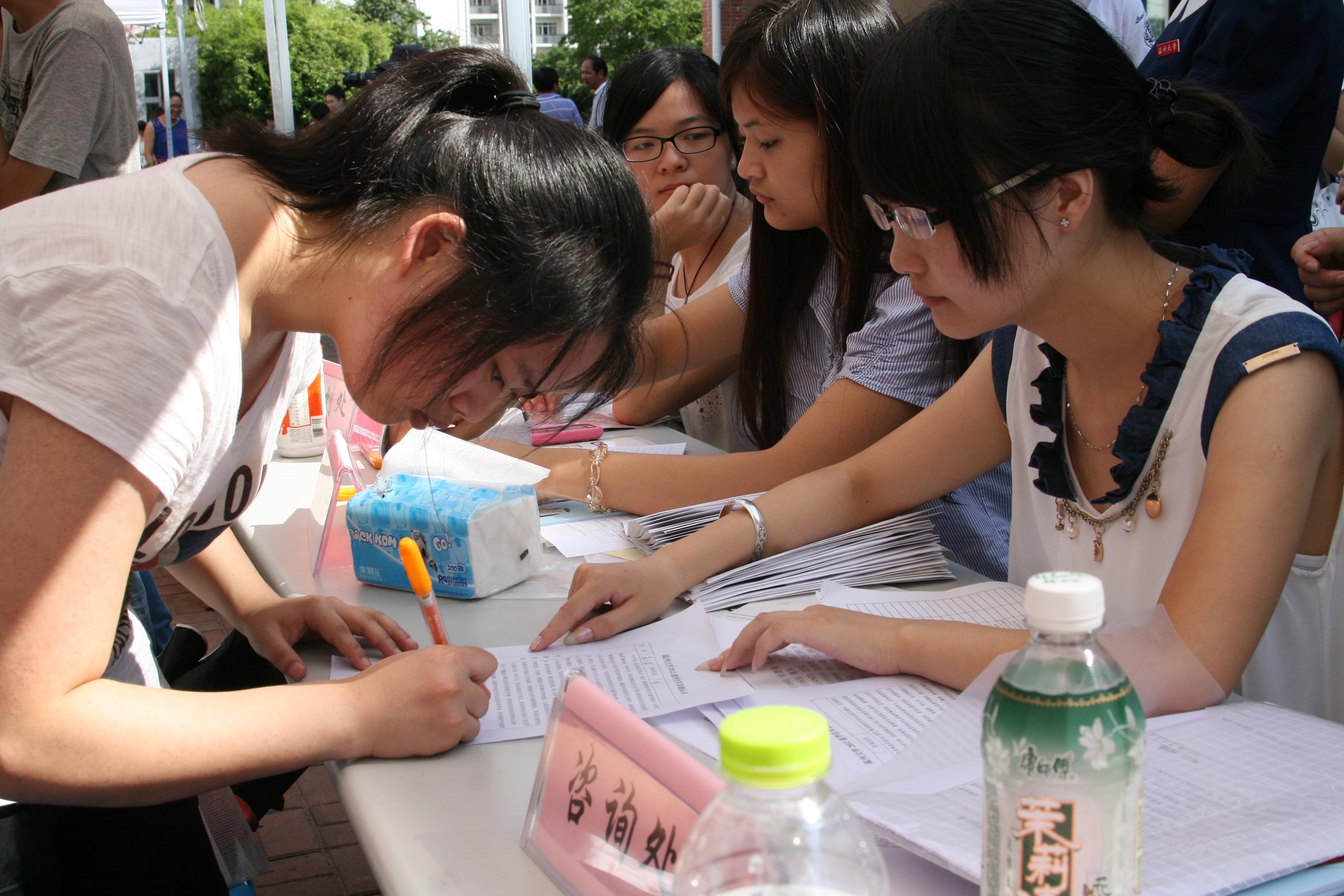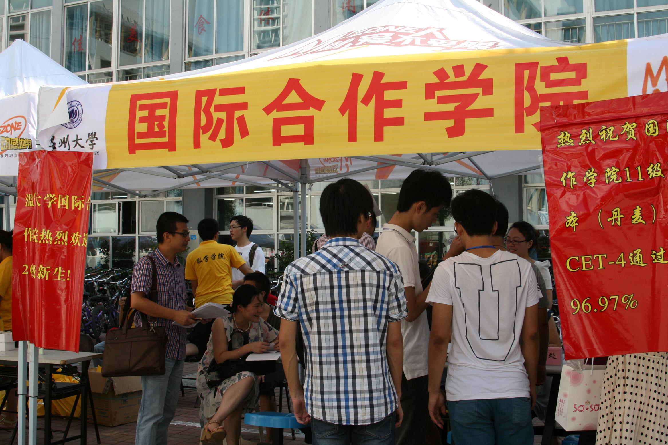 团委学生会成员及辅导员、班主任等,便早早地来到了学生公寓E区新生报到处。不到8点,就有一些学生和家长便陆陆续续地来到了学校,大家便开始热情地接待每一位新生,有条不紊地带领新生进行报到、注册、领取钥匙、一卡通、军训服等,前后大约5分钟左右就完成全部程序,最后还有同学搬行李、带路,把新生及家长送入寝室,真正做到了热情、周到、方便、快捷。