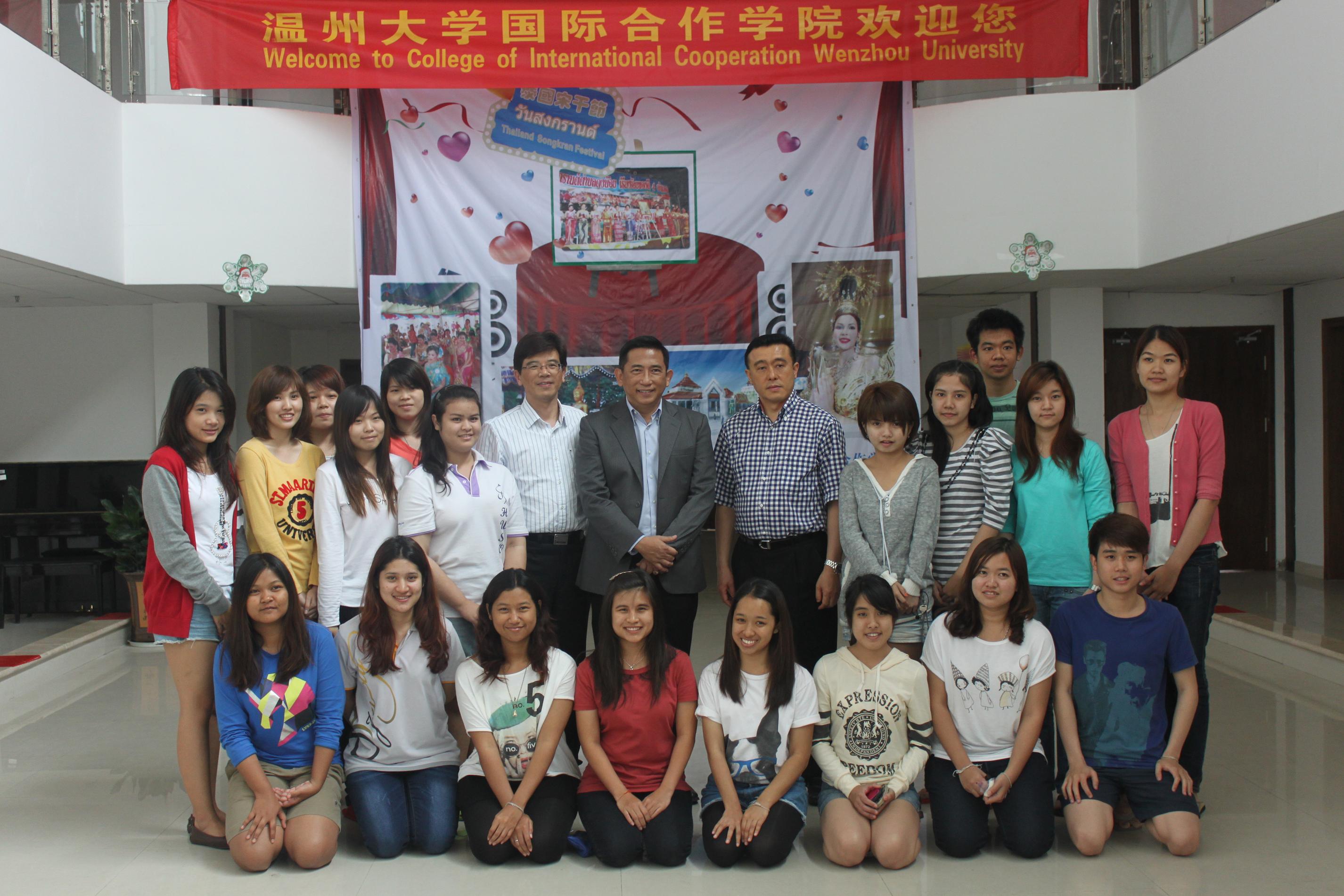 2012年5月9日下午15:00,泰国国家科学博物馆馆长披猜•宋成博士在温州大学薛伟副校长和外事处叶苗副处长的陪同下,看望了捷报即时比分网 26名来自泰国东方大学的留学生,并亲切的询问了他们的生活和学习情况,让捷报即时比分网 泰国留学生倍受感动。