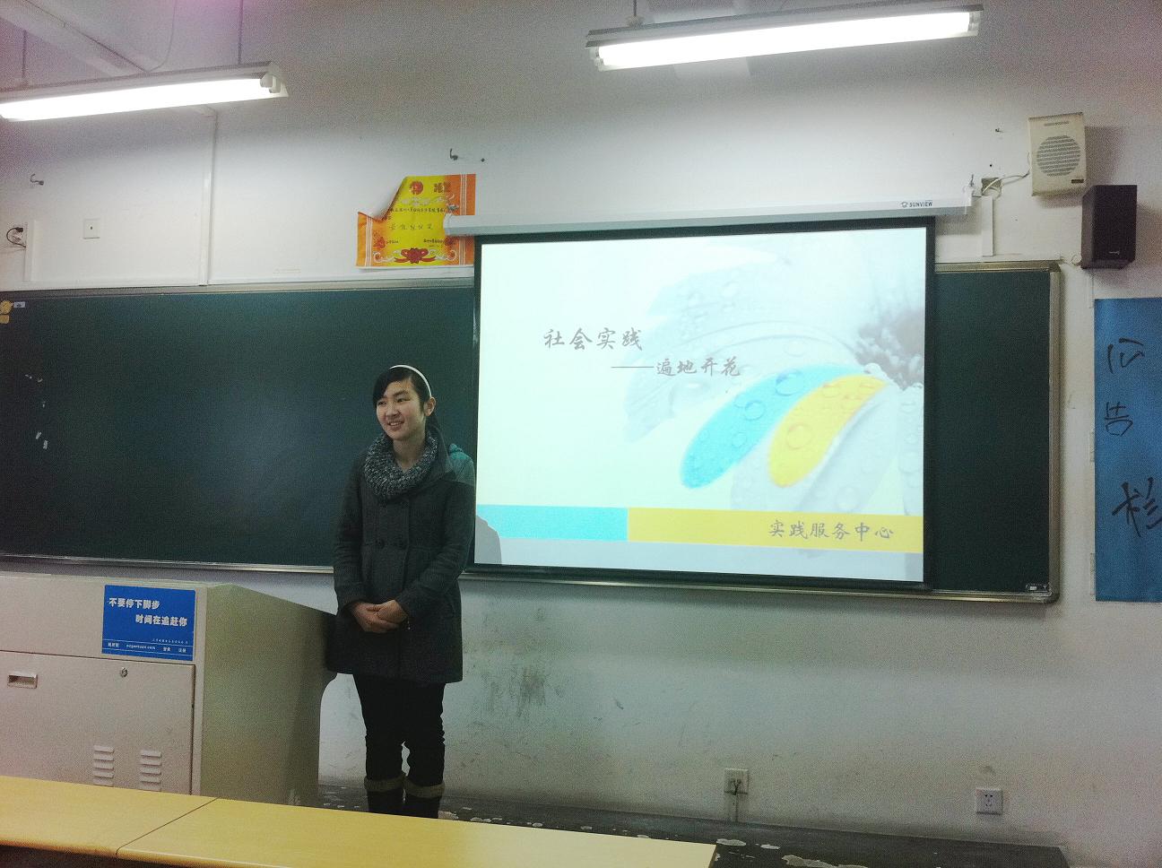 讲座上,严晓秋老师结合去年典型的大学生暑期社会实践活动优秀案例指导学生如何做好社会实践,鼓励大学生积极走出去,开展出更有意义更有影响力的暑期社会实践活动,在活动的策划、组织与宣传等各个方面提出了宝贵的指导性建议。张柳春同学具体介绍了社会实践相关制度、2012年暑期社会实践要求。另外就社会实践注意事项等与在会同学做了具体交流。