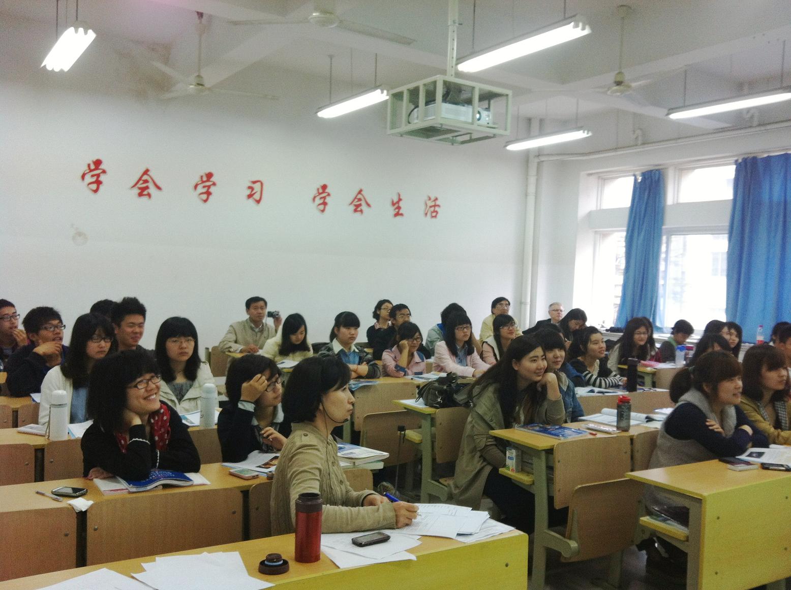 2012年4月13日上午9:05,温州大学教学督导室两位专家盛培林教授和张力学教授来到2011级市场营销本科班(中丹),与丹方项目主管Jorgen Dalhoff一起,对陈冰冰教授任教的国际化课程《商务英语》进行了随堂听课,课后中外专家进行了深入的交谈和评课。他们一致认为,该班学生英语水平较高,呈现了良好的学习风貌;而陈冰冰教授精彩的课堂教学同样得到三位专家的肯定和赞许。