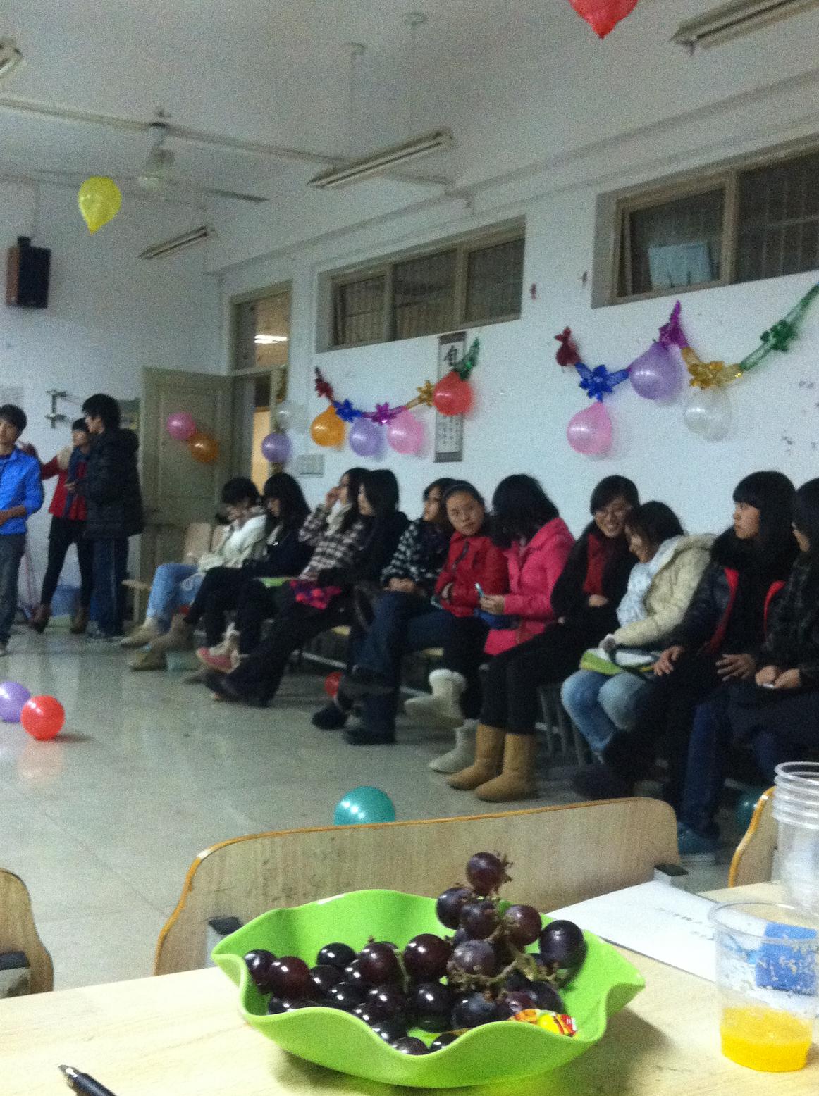 而我们11级中丹(1)班的传统便是在平安夜召集全班同学聚在一起,玩游戏、送苹果,送贺卡,一起迎接圣诞的到来。