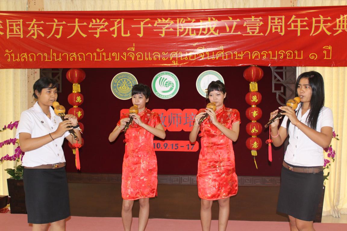 泰国东方大学孔子学院与中国温州医学院和温州大学合作建立,是泰国东部唯一一所孔子学院,承担着向泰国东部地区大中小学进行汉语教学和传播中国文化的重要任务。孔院成立一年来开办了多期汉语教学班、中国文化民乐班和书法班,多次举办了泰国汉语教师培训,假期汉语营地,中国汉语教材图书巡回展,东部地区中文歌曲比赛,HSK汉语水平考试,庆祝中华人民共和国成立60周年图片展,中国文化服饰展,上海世博会图片展,以及“庆华诞话中秋”茶话会,春节“迎新春”歌舞晚会等多项重大活动,在泰国东部学校和华人社区充分发挥了孔子学院的辐射作用,影响广泛反响强烈。