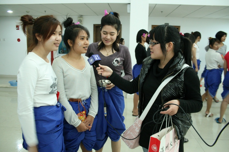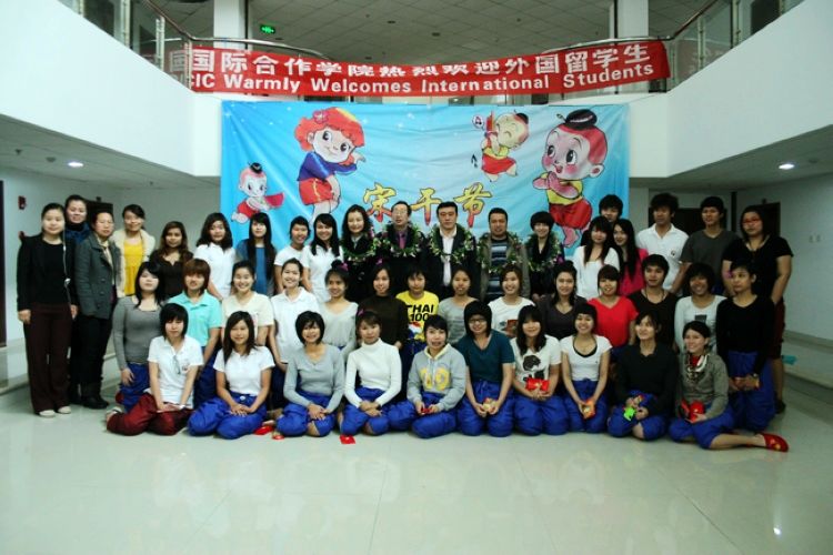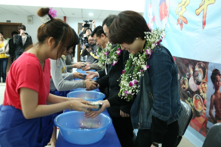 泰国留学生在茶山南校区专家楼用泰国传统仪式洒水礼以及民族舞蹈等形式,来欢度泰国一年一度的新年——宋干节。副校长薛伟、院长严晓鹏、院党总支书记方建敏、校团委屠霁霞老师以及留学生和学院老师参加本次活动。