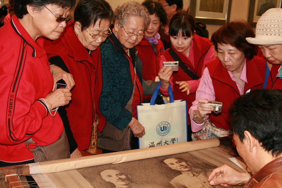 体验活动中,加拿大华文教师们参观了我校的学院路校区、茶山校区及校史博物馆、民俗馆、发绣馆。在校史博物馆里,华文教师们了解了温州大学的办学发展历程及多年来华文教育的情况。在民俗博物馆里,老师们一边参观一边饶有兴趣地从赖施虬教授的详细介绍中了解了温州地方的民俗民生情况。发绣馆孟永国老师的发绣技艺更是让加拿大老师们啧啧称赞。