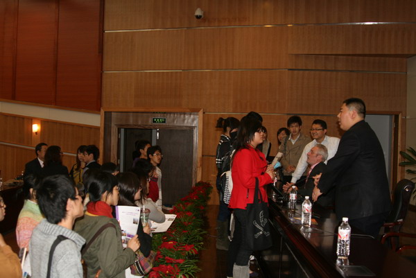 领导与有意向赴英国彻斯特大学留学的学生进行了面对面的交流,对学生的提问进行答复。此次说明会为温州大学的学生开辟了出国渠道、搭建了留学平台。