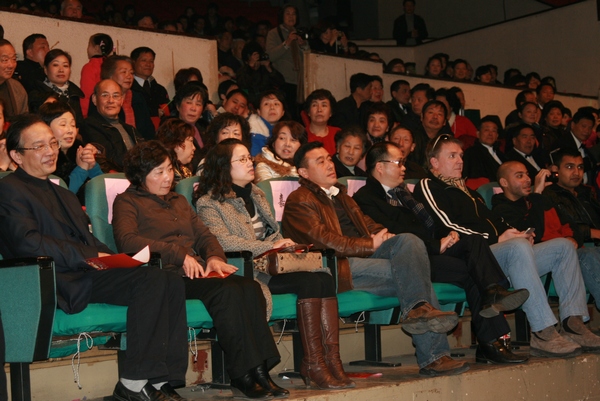 与温州都市报晚霞俱乐部合办的2010元旦文艺汇演正式上演了!冬日的寒意丝毫没有影响同学们和老年朋友们对汇演的热情,整个育英大礼堂座无虚席,让会场显得喜气洋洋、热闹非凡。汇演也得到了学校和温州都市报各位领导的全力支持,温州大学副校长薛伟亲临汇演现场,与大家一起观看精彩的节目。薛校长发表热情洋溢的新年祝辞。