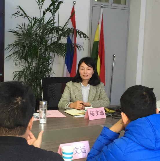 陈文远代表学院对章东飞一行的到来表示热烈欢迎。她简要介绍了温州概况、温州大学校史校情、温州大学办学特色和国际化办学成果;重点介绍了温州大学国际学生管理模式、留学生教育与管理部职能、相关科室人员配置、国际学生班主任辅导员队伍建设、品牌活动情况;详细交流了国际学生学风建设、公寓管理、评奖评优、签证管理、文化活动等常规工作。