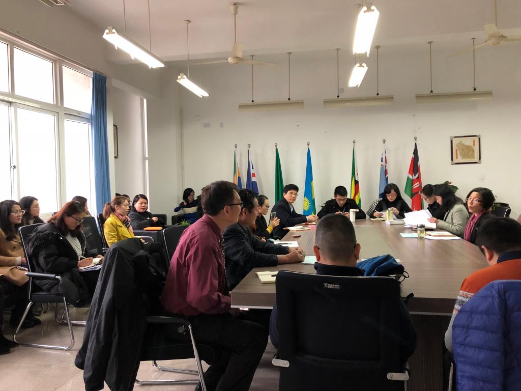 大家庭。她向全体教工传达了党的十九届三中全会决议精神,回顾了2017年学院整体工作情况,就2017年学院存在的一些问题,作了深刻的剖析和整改部署,提出了2018年的工作目标和工作措施:2018年学院要进一步凝练学院的办学目标,在建设好新获批的汉语国际教育专硕点的同时,努力申报汉语国际教育本科专业,突出学院的办学特色,进一步对接“一带一路”国家需求,做好汉语国际传播;在留学生教育方面,今年的目标主要是稳定规模、提质增效,强化国际学生的规范管理,完善国际学生教学管理制度、日常管理制度以及奖学金评选制度。搭建国际学生实习实践和文化体验基地,提升国际学生的实践能力和就业能力。最后,她强调,新学期全院教工要心往一处想,智往一处谋,劲往一处使,幸福都是奋斗出来的。