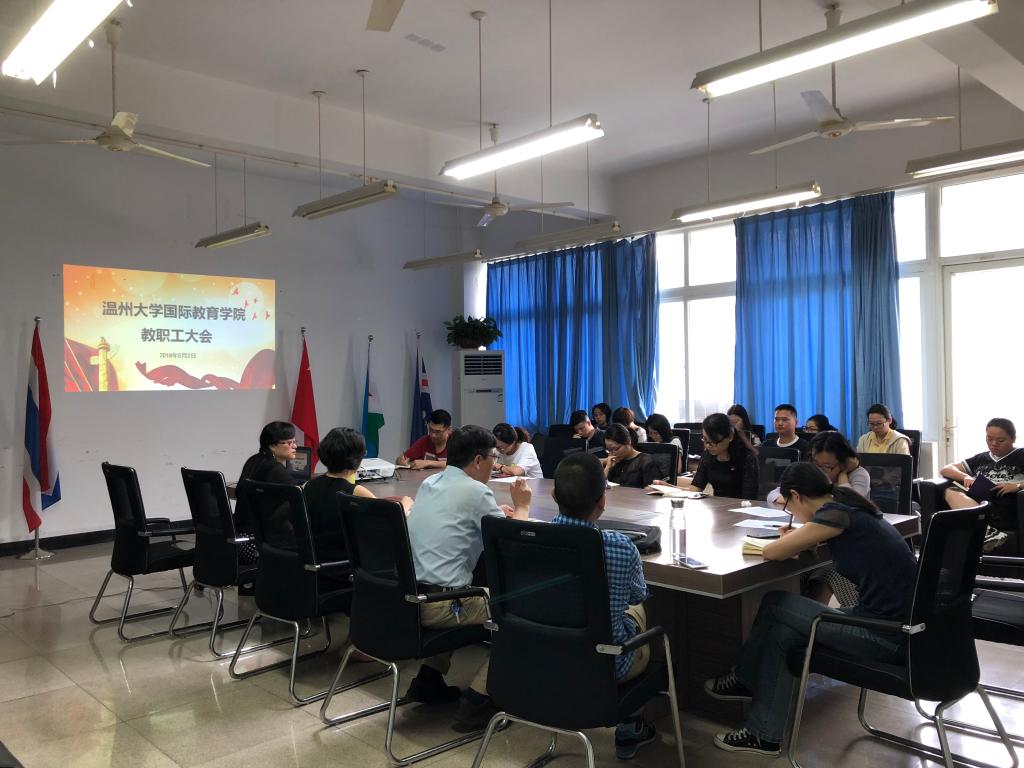 叶院长首先组织全院教职工学习了第十三届全国人民代表大会第一次会议的精神,重点介绍了宪法修改的内容以及宪法的重要性,并向全院教职工传达了政府报告中五年来的成就、十二个关键词和六大突出特征。随后,带领全体教职工学习了《中共温州大学委员会贯彻落实中央八项规定精神实施办法》、《关于进一步改进工作作风、提高工作效能的实施意见》两个文件,并进行了详细地解读与说明,她要求全院教职工要认真学习深入贯彻文件精神,积极提升服务质量,努力提高工作品质,改善工作效率,改进工作作风。