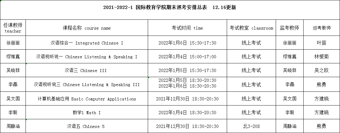 为严肃考风考纪,保证考试工作的顺利进行,根据学校要求,捷报即时比分网 组织学院领导对期末考试进行巡查,巡考工作安排表如下: