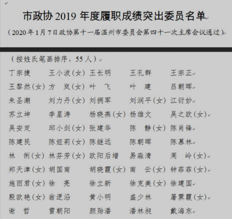 吴之欧老师获温州市政协2019年度履职成绩突出委员称号。