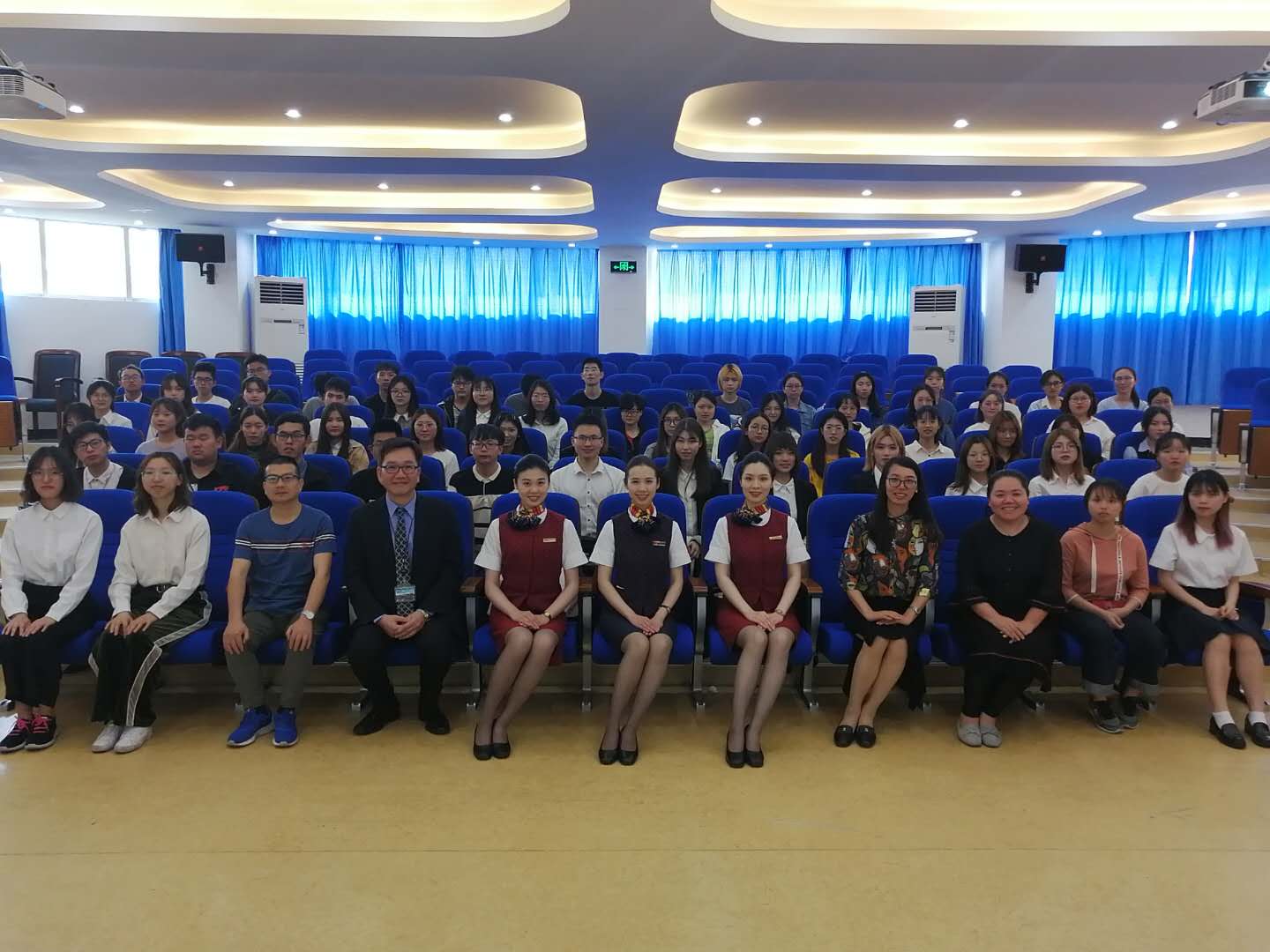 航空管理教研室主办的”航空学术沙龙讲座——空中服务礼仪”于5月29日下午,在北校区3号楼203报告厅举行,中国国际航空股份有限公司温州分公司特别协助捷报即时比分网