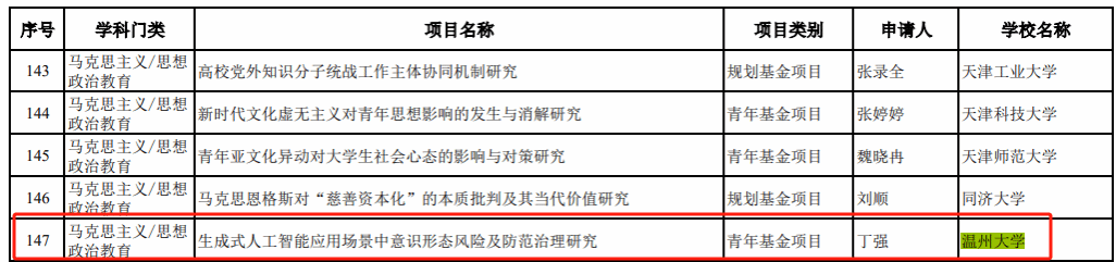 荣获2024年度教育部人文社会科学研究一般项目立项