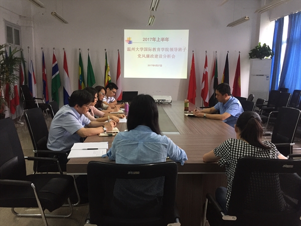 钱强在听取了班子的汇报和发言后,对学院领导班子的党风廉政建设工作给予了充分肯定,同时也对班子提出了三点要求:一是要吃透上级要求,强化廉政意识,构建和谐班子,在快速推进事业的同时,对自身要有更高的要求;二是要充分认识国际教育的特殊性,紧绷安全这根弦,加强信息员队伍建设,严把意识形态关;三是结合国际学院(留学生教育与管路部)“管办合一”的新定位、新职能,统筹管理留学生事务,快速推进国际化特色发展,成为温大国际化战略的领航者和推动者。