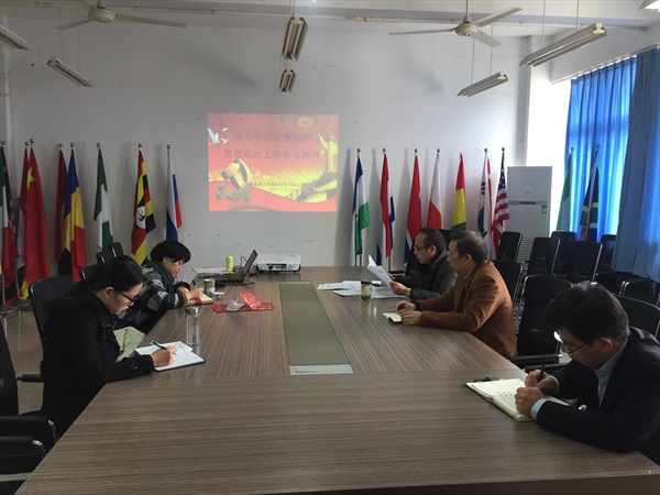 为了深入学习贯彻全国全省高校思想政治工作会议精神,根据学校宣传部《关于深入学习贯彻高校思想政治工作会议精神的通知》的要求,3月8日上午,国际合作学院党总支召开学院理论学习中心组(扩大)学习会,集中学习全国全省高校思想政治工作会议精神,党总支书记朱建平主持会议,学院总支委员和教工支部书记参加会议。