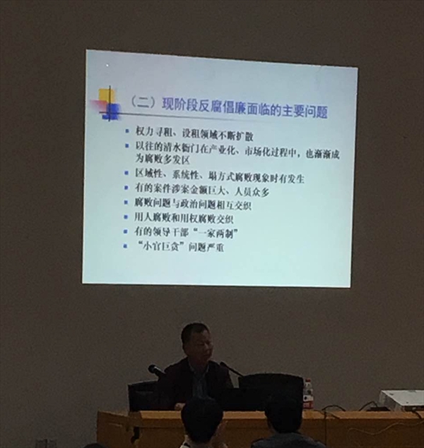 为切实加强党风廉政建设,进一步筑牢广大党员干部及教师的思想道德防线,2016年11月16日下午,校党委委员、纪委书记吴金法在岩松堂步青厅为生命与环境科学学院、建筑工程学院和国际合作学院等三个学院全体教职工与研究生党员作了题为“廉洁从教、立德树人”的党风廉政专题报告。