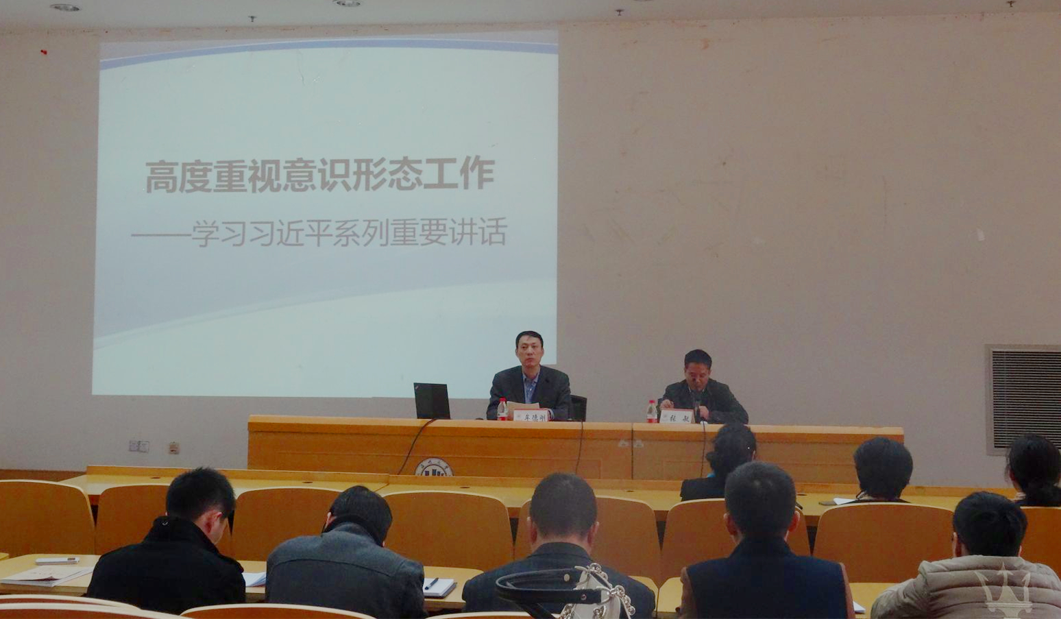 联合举办面向教工的形势政策学习会,邀请校党委副书记牟德刚作《高度重视意识形态工作——学习习近平总书记系列重要讲话》的讲座。