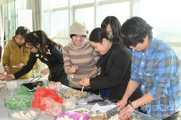 摞起袖子,剁韭菜、拌馅、包饺子……12月27日傍晚的专家楼热闹非凡,只见国际合作学院的美丽俏佳人们正在此大显身手,包饺子的现场拜师的拜师,DIY的DIY,各式各样的饺子、小笼包、云吞都在女老师们的手中新鲜出炉,当然,男老师们也不甘落后,充当评委对饺子美观程度、下锅后完整度和创意性进行评价之余,of course也要一露身手,亮上真功夫。大家互相切磋技术,包的热火朝天,欢声笑语不断,场面异常温馨!