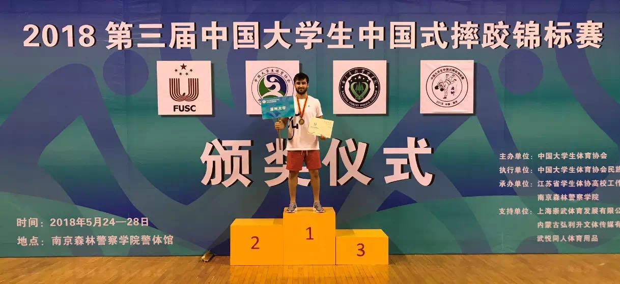 前不久,在被评为“青春温大”·2018年度榜样人物之后,AMIROV RUSTAM(卢思谈)又在第三届中国大学生中国式摔跤锦标赛中斩获佳绩。卢思谈是来自塔吉克斯坦的一名温州大学2017级本科生,现在学习商务汉语。他从入校以来便深深迷上中国功夫,并跟随专业老师学习,他说:“我要学习更多的中国功夫,把她们带回我的家乡。”