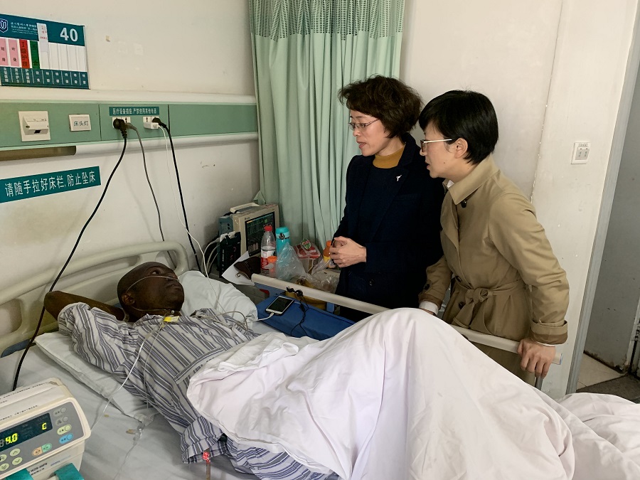 党总支副书记张雪萍和留学生辅导员一行4人赴温州医科大学附属第二医院探望该生。