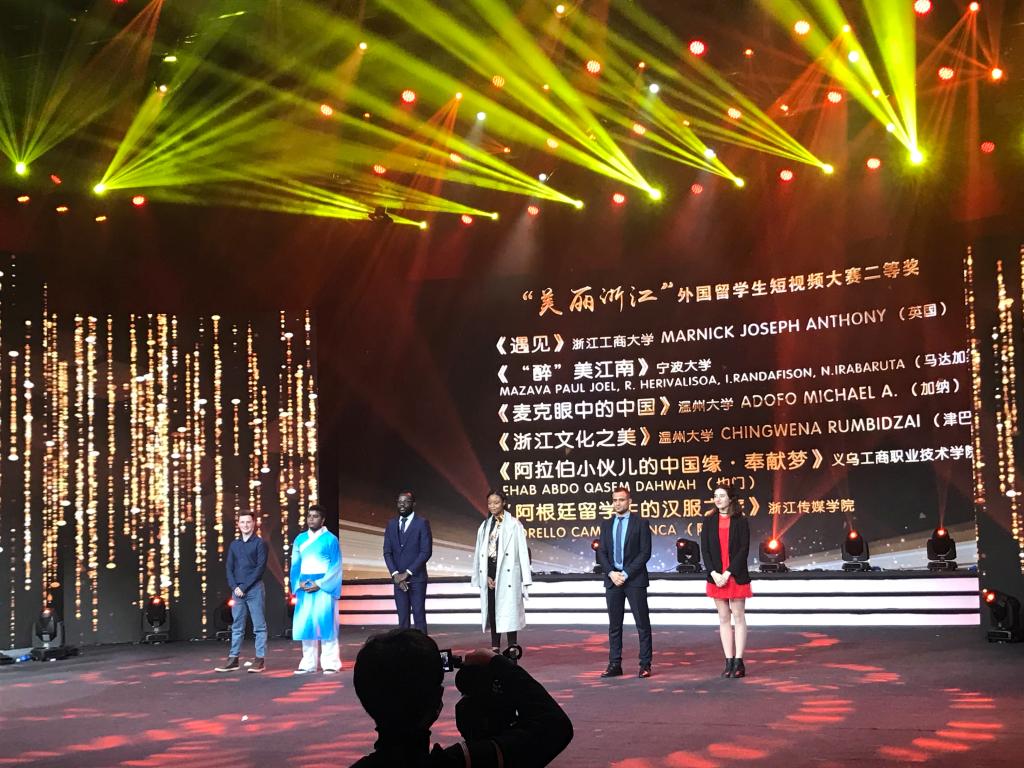 12月11日晚,浙江省外国留学生第十四届“梦行浙江”系列活动之“美丽浙江”短视频大赛颁奖仪式在浙江传媒学院下沙校区举行。我校来自加纳的ADOFO MICHAEL ADJEI所拍摄的视频《麦克眼中的中国》和来自津巴布韦的CHINGWENA RUMBIDZAI所拍摄的视频《浙江文化之美》均获得二等奖。
