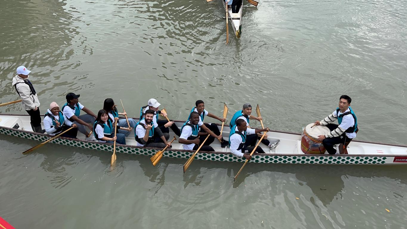 “这是我第一次参加龙舟比赛,我感到非常的激动和兴奋,在训练和比赛中我学到了很多关于中国龙舟文化的知识,也深刻感受到了团队合作的重要性,这对我来说是一次非常难忘的经历。龙舟大赛,我们明年再战!”来自尼日利亚的国际学生IBRAHIM HUMRAN ABUBAKAR(中文名贝卡)开心地向大家分享着自己的龙舟感受。
