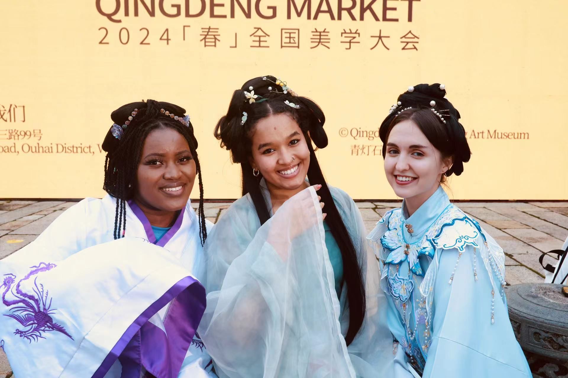 4月30日晚,2024青灯市集全国生活美学大学(春季)如约鸣锣开市,塘河两岸热闹非凡。我校来自俄罗斯、摩洛哥、泰国、越南等国家的20余位留学生身着汉服游市集、品文化,开启了一场领略中华传统美学魅力的奇妙之旅,成为一道亮丽的风景线。