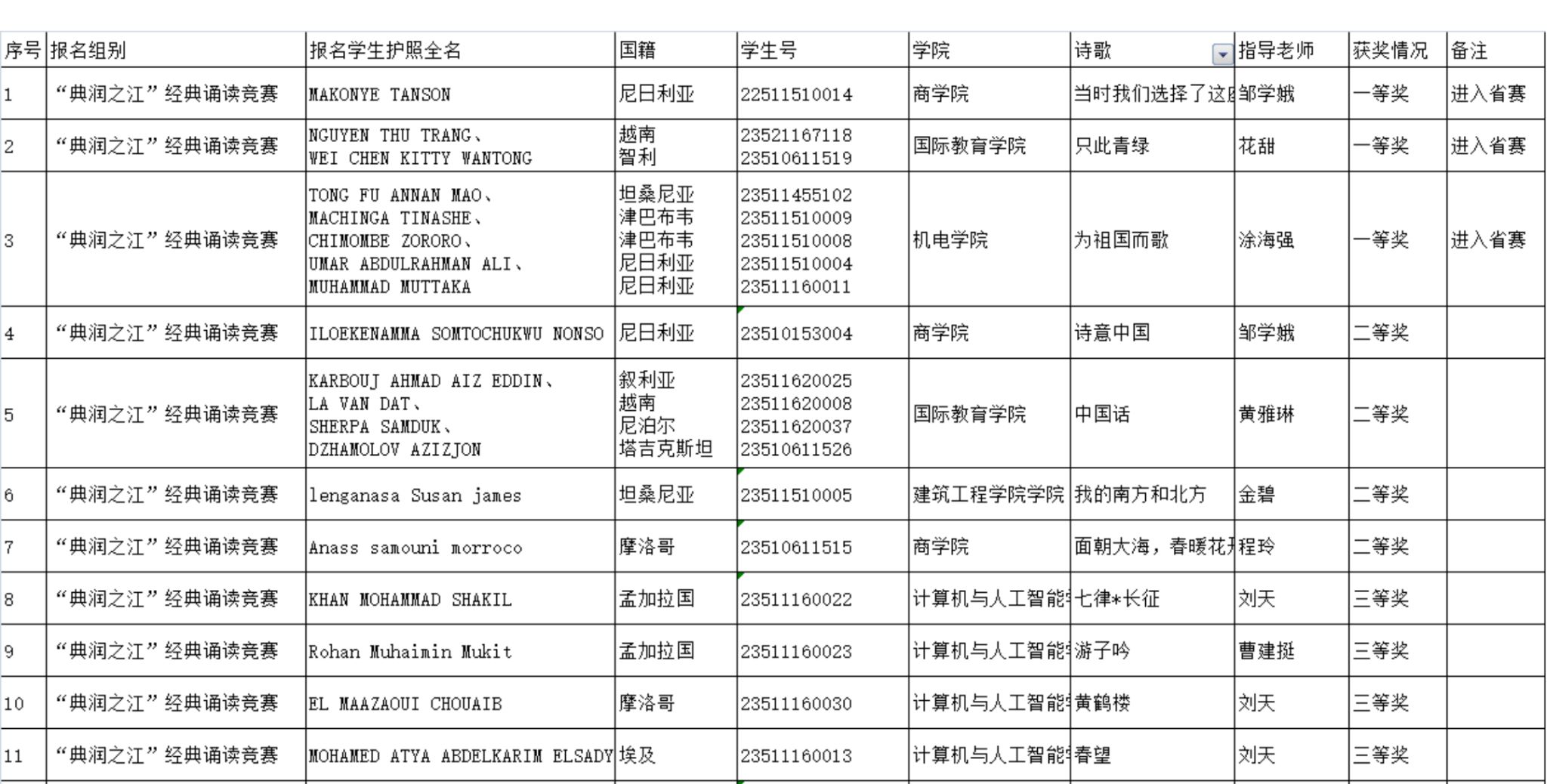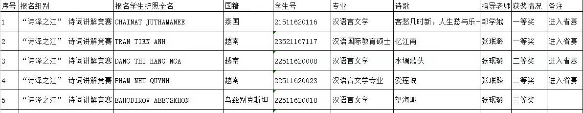 “诗泽之江”诗词讲解竞赛获奖名单