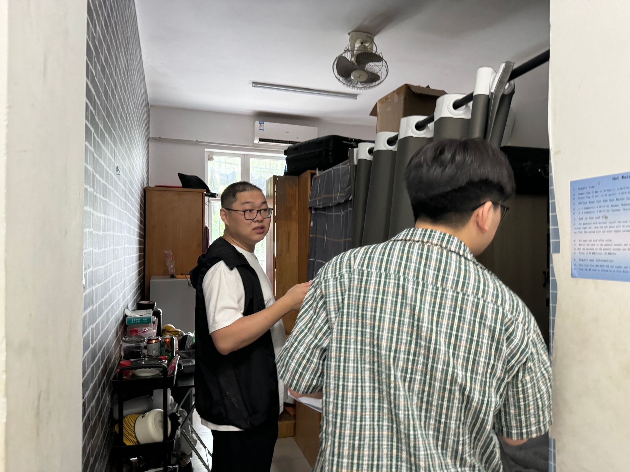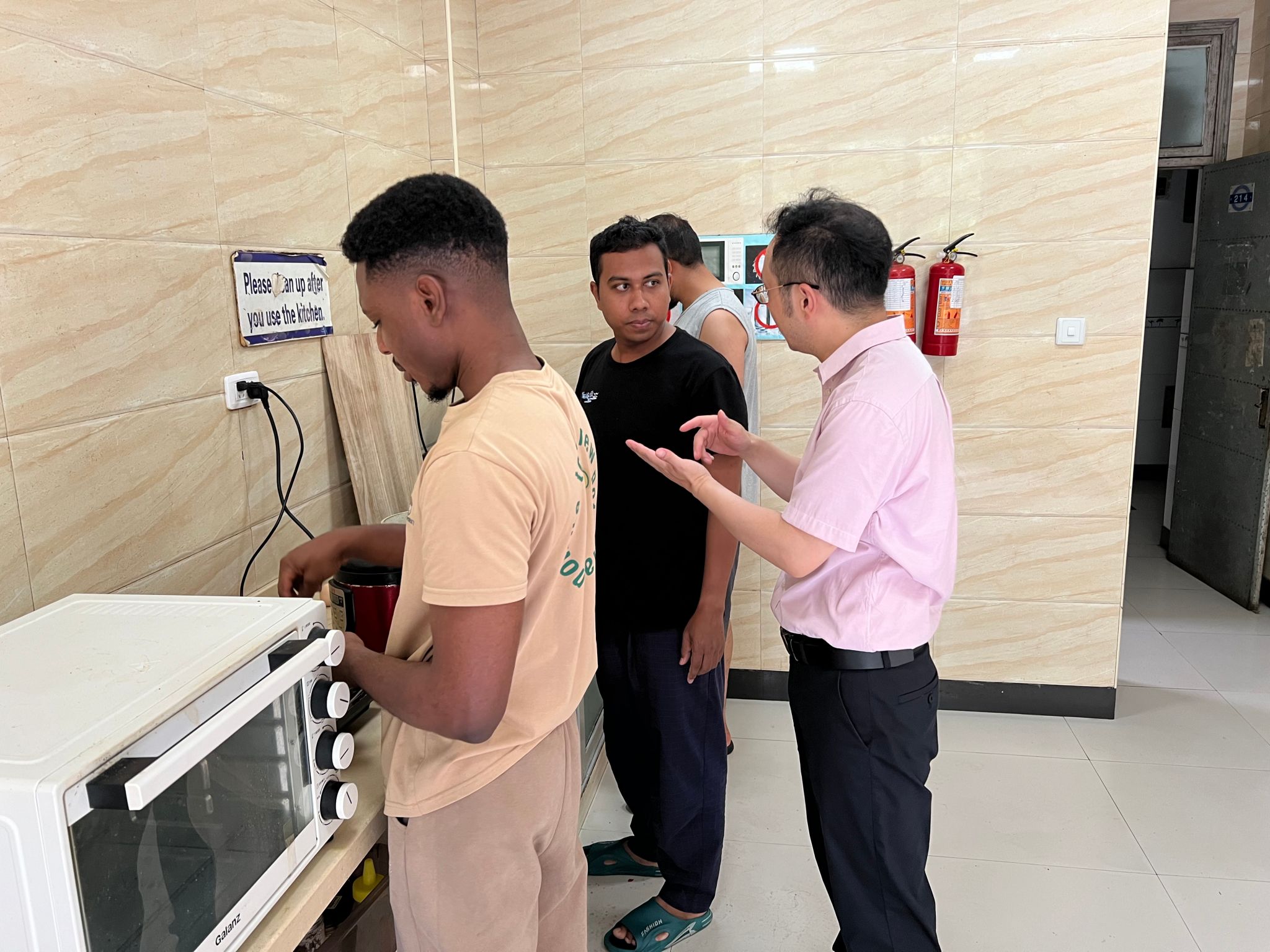 留学生及汉硕学生公寓的用电安全、消防设施、门窗防护以及卫生状况等方面进行了逐一排查,并反复叮嘱同学们学会进行公寓安全的自查自纠、防患未然,增强安全意识,遵守公寓管理规定,合理安排暑期学习和生活。在检查的同时,老师们还与学生进行了亲切交流,了解他们的学习、生活和思想动态,并对大家提出的问题进行逐一解答。