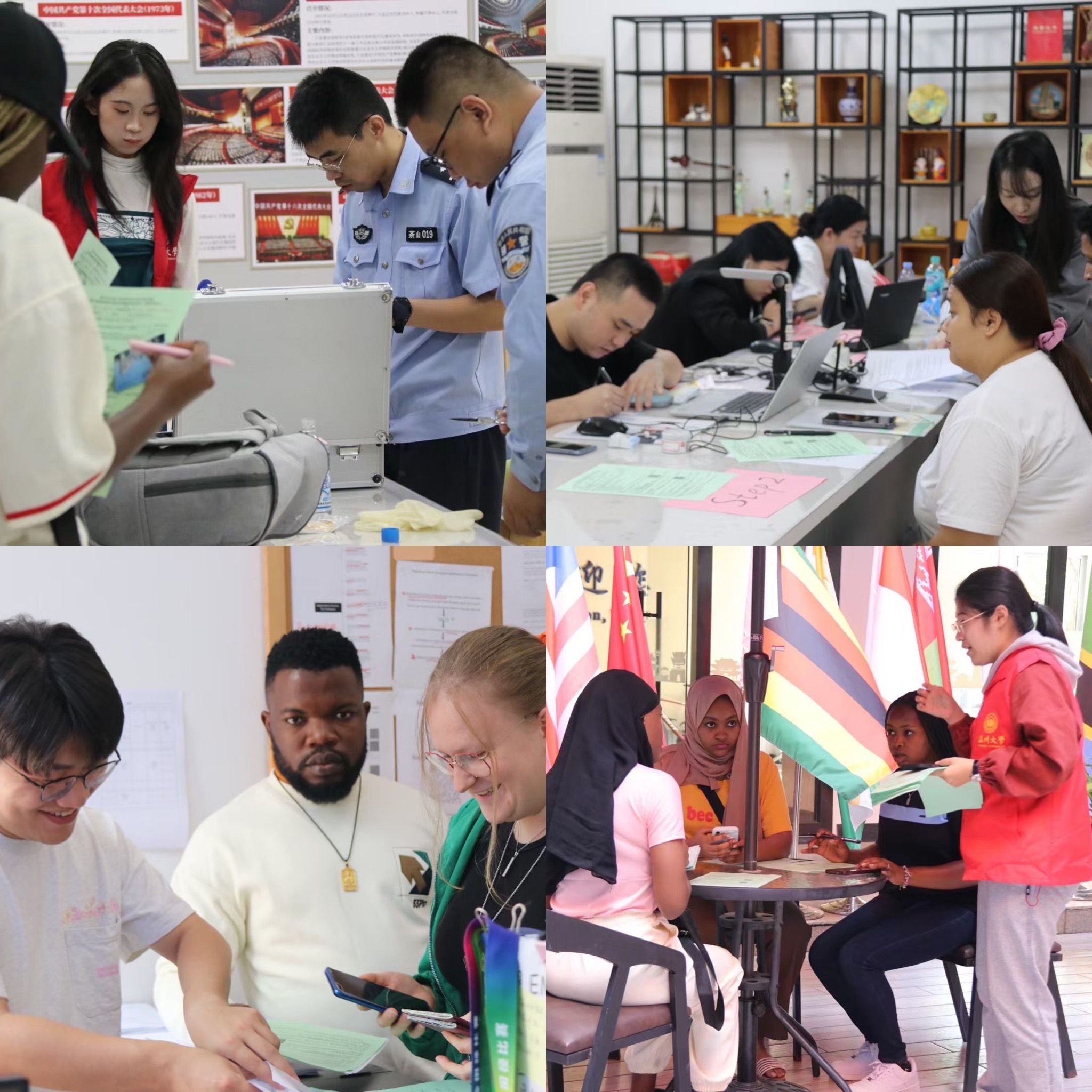 报到现场秩序井然,气氛热烈。学院制定了详细的迎新工作方案,优化、细化各项流程和安排,并在每个办理点设立醒目的指示牌,提供一站式服务,确保新生体检、学籍注册、宿舍入住、居留许可办理、领取入学资料等手续便捷到位。志愿者们服务周到、热情,为国际新生们提供咨询,搬运行李,带领新生完成报到全流程,师生们以温暖行动,真诚迎接每位新同学。茶山派出所和中国联通公司也积极参与到此次迎新工作中,提供上门服务,为新生们带来了更多的便利。