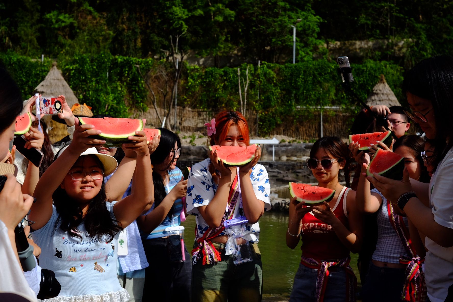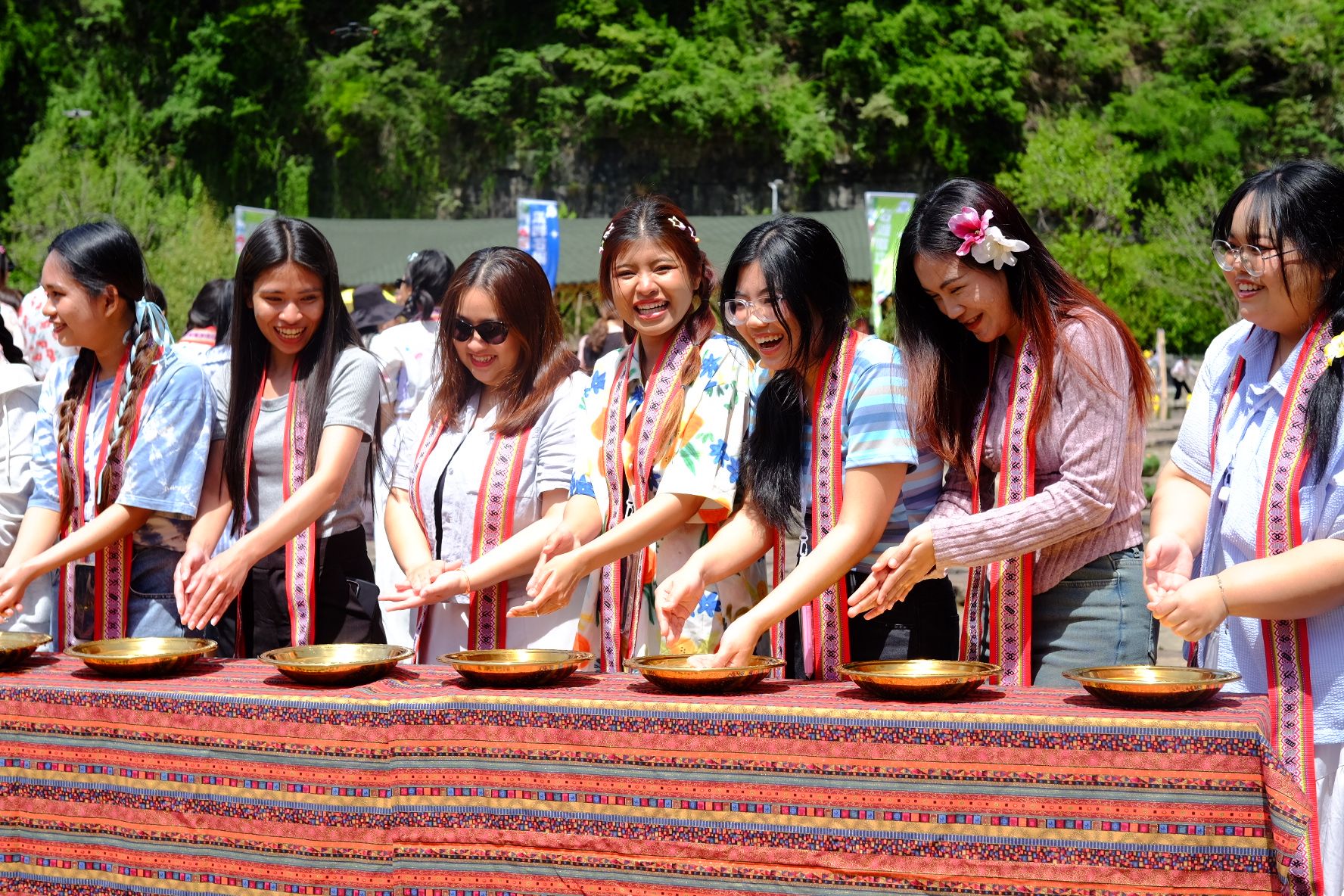 活动伊始,泰顺县南浦溪镇人民政府为留学生们送上象征吉祥的畲族彩带,以传统仪式传递新年祝福。开幕式上,“温州大学留学生国情教育实践基地”正式揭牌,该实践基地的揭牌也为我校再添国际学生国情教育实践平台,也将助力当地非遗文化的传播。随后,泰国学生在戏水区献上精心编排的传统舞蹈,灵动曼妙的舞姿与独具特色的服饰,生动展现了泰国文化的魅力,吸引众多游客驻足欣赏。