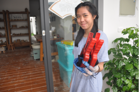 浙江工贸职业技术学院为此次活动做了充分的准备,杨老师表示泰国学生是温州首批来此进行体验的学生,因此他们十分重视,并希望所有到此体验的同学都可以感受到蓝夹缬的美丽。
