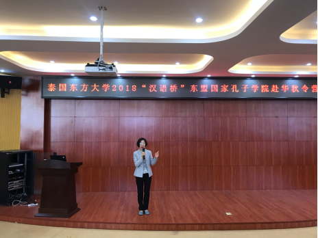首先,叶苗致词。叶院长表示光阴似箭,彷佛昨天才刚进行了开营仪式。在这为期两周的时间里,“中国人的一天”这一活动不仅给温大附小的中国志愿家庭留下了深刻的印象,也让泰国学生了难忘的回忆。此次参加秋令营的同学就如同泰国派来的“外交使者”,为两国友谊进行助力。最后,叶院长表示大家回去后可以和自己的朋友讲述自己在中国的所见所闻诶,并且希望大家以后可以有机会再来温州,或读书,或旅游!
