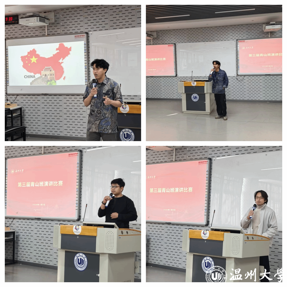 2026年1 月 9 日,第三届 “温大青山班” 留学生演讲比赛在北3-201圆满举行。这场以 “我在温大的留学生活” 为主题的比赛,不仅是温大青山班学员中文口语能力的实力比拼,更是一场跨文化交流的温情盛宴,现场掌声与喝彩声此起彼伏,气氛热烈而真挚。