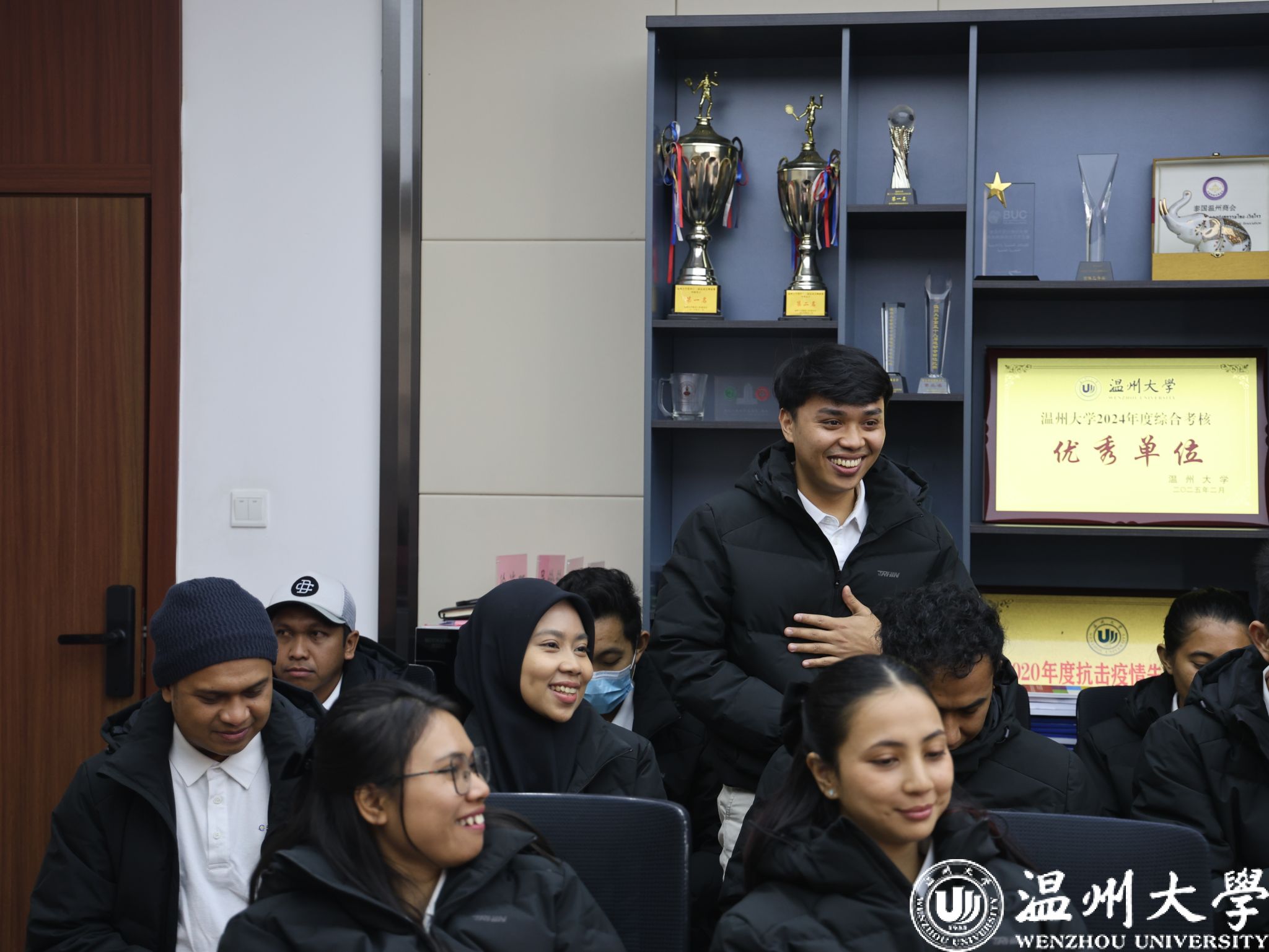 随后,青山班(IWIP)学员们依次发言,分享近四个月在温大的学习与生活的感悟。学员们真诚地讲述了从初到中国时的忐忑,到逐渐适应并融入校园生活的喜悦;从对中文的陌生,到如今能够进行日常沟通甚至理解部分文化内涵的成就感。他们特别感谢永青集团及温州大学提供的宝贵学习机会和悉心关怀,并坚定表示,未来将立足岗位,服务纬达贝园区建设,助力中印尼友好合作。