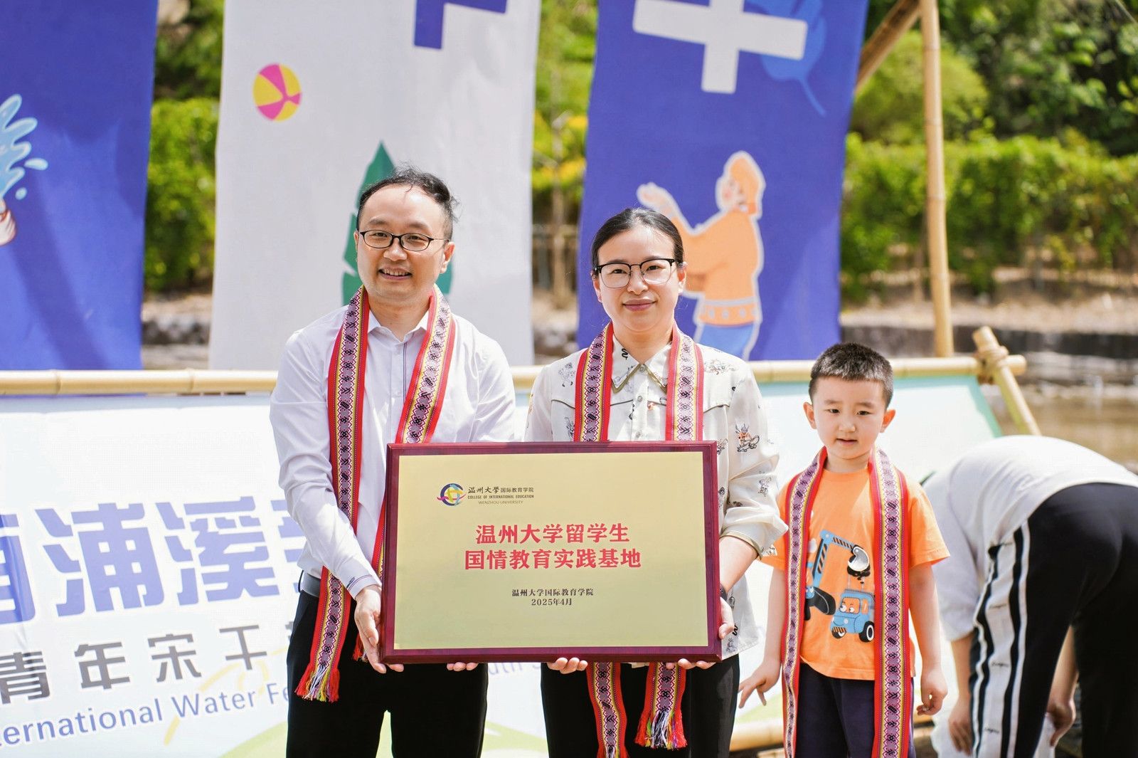 活动伊始,泰顺县南浦溪镇人民政府为留学生们送上象征吉祥的畲族彩带,以传统仪式传递新年祝福。开幕式上,“温州大学留学生国情教育实践基地”正式揭牌,该实践基地的揭牌也为我校再添国际学生国情教育实践平台,也将助力当地非遗文化的传播。随后,泰国学生在戏水区献上精心编排的传统舞蹈,灵动曼妙的舞姿与独具特色的服饰,生动展现了泰国文化的魅力,吸引众多游客驻足欣赏。