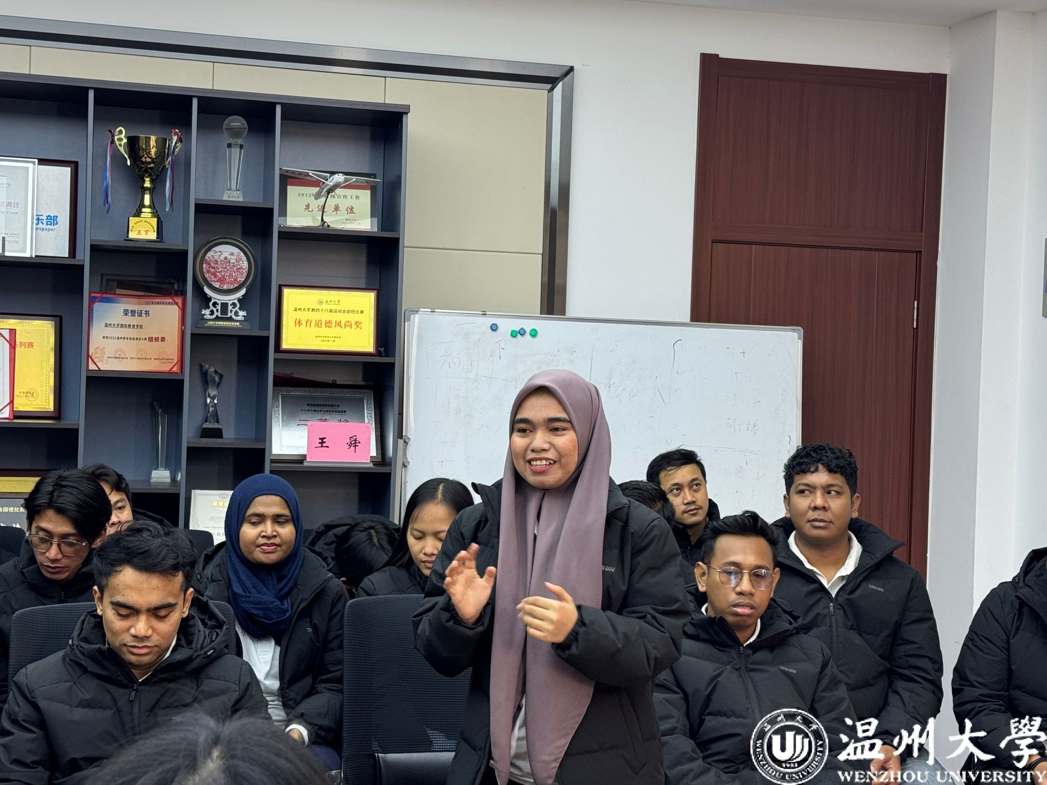 随后,青山班(IWIP)学员们依次发言,分享近四个月在温大的学习与生活的感悟。学员们真诚地讲述了从初到中国时的忐忑,到逐渐适应并融入校园生活的喜悦;从对中文的陌生,到如今能够进行日常沟通甚至理解部分文化内涵的成就感。他们特别感谢永青集团及温州大学提供的宝贵学习机会和悉心关怀,并坚定表示,未来将立足岗位,服务纬达贝园区建设,助力中印尼友好合作。